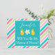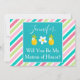 A lovely way to ask your Matron of Honor to be a part of your wedding, this invitation features a lovely pink, green and blue diagonally striped background with a blue and white box in the middle. The box has a template for customizing her name with "Will you be my Matron of Honor?" written in lovely white font. Personalize yours today!