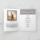 A beautifully appointed headline accompanies a favorite photo on this celebration of life program. Easy to customize for your loved one's memorial. Includes space for an obituary, service program and memorial details or message from the family. Background colors can be changed as needed.