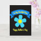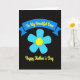 This greeting card features a deep black background where bright blues and sunny yellows glow with a cozy, affectionate energy ❤️. Across the upper area, a curved blue banner arcs from side to side, like a gentle hug framing the message. Inside the banner, the main line of text sits centered in rounded, flowing lettering colored warm yellow, giving it a friendly, intimate tone. In the middle, a simple five-petaled flower draws the eye, with soft sky-blue petals that feel calm and caring, as if offered to someone special 🌼. The flower’s center is a yellow circle that shines like a small light, adding a tender, cheerful warmth to the scene. A faint inner glow around the blue shapes adds depth, making the banner and petals look slightly lifted from the dark backdrop. Near the bottom edge, a second line of text appears in the same yellow and similar flowing style, balanced neatly under the flower. The blue banner and blue petals have subtle glowing edges against the black background, with the yellow lettering and flower center standing out clearly.