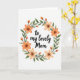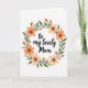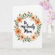 Designed with a circular wreath of flowers and leafy stems, this card centers the eye on a loving message meant for Mom ❤️. In the middle, the words “to my lovely Mom” sit in flowing black lettering, placed neatly within the open white space. Around it, peach and soft orange blossoms open like gentle smiles, with reddish-brown, star-shaped centers that add warmth. Small rounded buds tuck between petals and leaves, suggesting quiet care and closeness, like a hug held a little longer. The greenery shifts from light olive to deeper green, weaving through the ring and giving the bouquet a calm, gathered-from-the-garden look. The white background keeps everything airy, letting the floral circle feel like it’s floating around the message 🌼. The wreath forms an even loop with soft-edged petals, scattered buds, and layered leaves encircling the centered text.