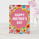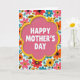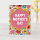 Designed with a joyful, celebratory look, this card centers on a large cloud-shaped label in bright fuchsia that draws the eye right away. A glossy yellow outline hugs the shape, giving it a slightly raised feel, like a warm frame around a close message. Inside the pink area, rounded white sans‑serif lettering sits centered and reads like a friendly note between close people ❤️. Behind it, the full background is covered in repeating, folk‑style flowers that feel like they’re leaning in toward the middle, as if sharing the moment. The blossoms mix reds, oranges, pinks, and teal blues, with dark green and golden leaves scattered between them for balance. Many flowers have small black centers that add contrast and keep the busy pattern easy to read 🌼. The text stays contained within the fuchsia cloud while the floral pattern fills every edge around it in bright, saturated color.