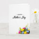 Designed with a wide white background, this card keeps plenty of open space so the flowers and message feel like a gentle embrace ❤️. Near the upper center, a celebratory Mother’s Day message sits in dark lettering, mixing smooth flowing letters with a simple printed style for contrast. The text is spaced comfortably, giving it room to breathe while still drawing your eye first. In the lower right corner, a full bouquet gathers close together, like a thoughtful gift being held out with care. Bright fuchsia blooms with deep centers mingle with sunny yellow daisy-like flowers, while round soft-blue blossoms add a calm, friendly note 🌼. Crisp white petals with warm yellow centers tuck between green leaves and a few unopened buds, suggesting something tender and growing. The lighting stays soft and even, and the flower cluster is anchored tightly to the bottom-right edge with stems and leaves fanning outward.