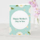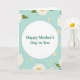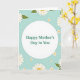 This card features a calm pastel aquamarine background with a large white circle centered like a spotlight for your message. Inside the circle, the words “Happy Mother’s Day to You” sit neatly in the middle in deep green lettering, drawing the eye right away. Around that open space, white daisy-like flowers with sunny yellow centers drift in, some large and partially cropped at the edges as if they’re leaning closer with gentle affection ❤️. Smaller blossoms sprinkle across the background, creating a light, friendly rhythm that feels like a shared spring morning. A few deep green leaves tuck between the petals, adding contrast and a natural, soothing balance 🌼. The lighting stays soft and even, letting the layered petals show a subtle cut-paper texture without harsh shadows. Several oversized blooms enter from the corners and sides, with their white petals and yellow centers overlapping the aquamarine field.