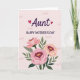 This greeting card features a tall, centered layout on a pale pink background with soft, cloud-like shading that feels gentle and affectionate ❤️. Near the top, a large family title appears in dark purple lettering, with two small red hearts tucked on either side as if they’re quietly cheering it on. Just below that, a shorter line announces the occasion in a darker, easy-to-read color, sitting neatly in the upper third of the design. The lower half is filled with three large, stylized flowers in blush pink and soft peach, arranged close together like a warm bouquet shared between loved ones. Each bloom has a deep burgundy ring around a golden yellow center, adding a romantic contrast that draws your eye inward. Deep green leaves and stems spread around the blossoms, framing them like a protective embrace and adding depth against the soft background 🌼. The text stays above the florals, leaving the bottom area to showcase layered petals, burgundy centers, and scattered green foliage.