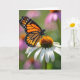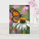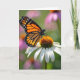 Designed with a close-up view, the card shows a delicate winged insect in glowing orange, deep black, and crisp white resting on the flower’s center, as if leaning in for a quiet moment of connection ❤️. Its broad wings are partly open, with fine veins and a neat row of tiny white dots along the edges, creating a balanced, symmetrical look. Slender antennae angle upward, giving the insect a focused, attentive posture toward its floral perch. The blossom has pure white petals spreading outward from a textured central disk in spiky orange-yellow, making a striking contrast against the insect’s markings 🌼. Warm, gentle light highlights the petal ridges and the tiny hairs on the insect’s legs, adding a soft, intimate feel to the scene. The message text sits near the bottom in a simple dark gray, with a smaller line beneath it in muted orange that echoes the flower’s center. Behind them, the background fades into a blurred wash of green with faint hints of pink, keeping the insect and flower sharply in view.