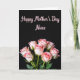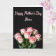 This card features a dramatic black background that makes a cluster of freshly opened roses feel intimate and close, like a quiet shared moment ❤️. The flowers fill the lower third, with layered petals in soft blush pink that deepen toward the centers and fade to pale edges. Green stems and small new leaves peek out beneath the blooms, adding a gentle, living contrast against the dark setting. The warm lighting gives the roses a tender glow, as if they’re being admired by someone who cares. Near the top center, a short Mother’s Day message is placed with flowing, cursive-style lettering in a matching soft pink. The text sits comfortably above the flowers, leaving plenty of open space so the design feels calm and focused 🌼. The roses appear slightly angled toward one another, with highlights catching on the petal edges and shadows pooling between the blossoms.