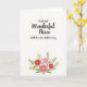 This card features a white background with a gentle mix of lettering and a garden-like illustration that suggests closeness and affection ❤️. Near the top, the words “FOR MY” sit in simple dark lettering, leaving plenty of open space around them. Just below, “Wonderful Niece” appears in flowing black lettering with soft curves that feel like an affectionate note passed between close family. Under that, the line “With love On Mother’s Day” is placed in smaller, matching black lettering, centered and neatly tucked beneath the main phrase. The lower portion is anchored by a bouquet of stylized flowers whose overlapping petals and clustered shapes feel like a warm hug in visual form 🌼. Large blooms in deep pink, fuchsia, and red stand out, while tiny yellow flowers add bright points like little sparks of joy. Fresh green leaves and slim stems weave through the arrangement, and the petals show radiating shapes with clear circular centers near the bottom edge.