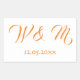 The perfect stickers for wedding related stationery, this item features a lovely orange and white color scheme. With orange font written on a white background, the couple's initials are in the center with the wedding date underneath. Personalize yours today!