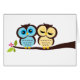 Sweet yellow and blue owls perched on a tree branch illustration.