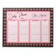 This is a perfect planner for busy families... easy to use and well organized. Each page rips off after use and the new page is ready for the next week. Clear print and personal monogram is fun.