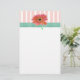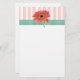 Pretty stationary with a header done in peach and white stripes, a green gingham ribbon and a peach colored Gerber daisy. Soft and pretty stationary great for any woman.