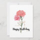 The phrase "Happy Birthday" is elegantly incorporated into the design, ensuring that your heartfelt message is conveyed with style and simplicity. The combination of the graceful carnations and the cheerful birthday wish makes this card a thoughtful and timeless expression of joy.