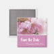 Lovely pink cherry blossom save the date wedding magnet. Floral photo art.