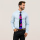 I bought this tie for a cosplay of Haruhi Fujioka for Halloween and anime conventions. It feels very nice and silky. It's my first tie ever, and I'm a pretty big fan since I always wanted a tie. It was longer than I expected it to be (quite a plus), but the purple stripe was also thinner than I expected it to be (a slight bit of a downer, but I don't mind too much). I had never used Zazzle before, but I am very impressed with the shipping time. I was looking for places to get a tie like this so last minute since the ties like this on Amazon were incompatible with Prime. Thus, I ended up here. I paid for express shipping, expected delivery October 30-31, and it arrived in the morning on the 30th. Very impressed. I might just use Zazzle again. The print job was okay. The colors were perfect, but as you can see in the pictures, the stripe was a little off-center, and there was a kink in the stripe around where it transitions from the wide end to the thin end. It should work perfectly for my cosplay, but it was a little too carelessly print to be a very professional tie.