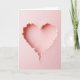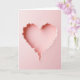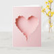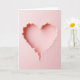 This Valentine’s Day card features a gentle heart shape cut from soft pink paper, placed at the center of the design. The outer paper is a light pastel pink, while the heart reveals a warmer rose tone beneath, creating a quiet contrast. Soft lighting casts natural shadows that give the torn edges depth and texture, making the heart feel real and expressive. The slightly frayed edges add character, turning imperfections into a meaningful detail. A small tear near the bottom of the heart resembles a delicate drop, suggesting tenderness and emotion. The overall look feels calm, reflective, and sincere, making this card a beautiful way to share love, warmth, and heartfelt feelings on Valentine’s Day.