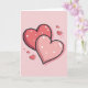 This Valentine's Day card features two overlapping hearts in soft pink tones on a light blush-pink background. The larger heart sits toward the upper left in a warm coral pink, with a slightly smaller rose-pink heart in front, giving the design a simple sense of depth. Both hearts are covered with scattered white dots and a few bright white shine marks that make them look smooth and glossy. Thick dark outlines define the hearts and help them stand out clearly from the background. Around them, several small hearts and tiny dot clusters float nearby, adding extra detail without crowding the scene. There isn’t any printed message or lettering on the front, so the artwork is the main focus and leaves plenty of room for your own note inside. Overall, it feels sweet, friendly, and full of affection—perfect for love or friendship ❤️💌🍫. Hope it helps you share warm Valentine’s Day feelings with someone special.
