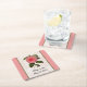Lovely Pink Peony on Lacey Looking Damask and Name Square Paper Coaster