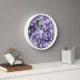 Brighten up a room with this stylish wall clock with white numerals that features a photo image of purple Delphinium blooms with white buttons. A lovely, floral design! Select your clock style and size. Use to decorate a living room, dining room, kitchen, bedroom, or any other room.