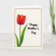 This greeting card features a single deep red flower placed on the left side of a soft cream background, with petals shaded from darker edges to lighter highlights that give it a gentle glow ❤️. A slim green stem supports the bloom, and two green leaves sit nearby with slightly curled edges that add a natural, relaxed touch. The open petals feel like a quiet offering, as if someone is standing just out of frame, holding it out with a tender pause. A thin red border runs around the edges of the card, echoing the flower’s color and keeping the layout neatly contained. On the right side, a short message appears in a flowing cursive-style font, spaced with plenty of room so it feels intimate rather than loud. The lettering is set in a matching red tone, aligned to the right of the flower so the eye moves from the bloom to the words in one smooth glance 🌼. Subtle shading on the petals and a small highlight along the curve of each leaf add depth without crowding the simple background. The red border is narrow and even on all sides, framing the cream field with the crimson flower positioned left-of-center and the red text placed to its right.