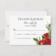 The RSVP card addition to the Lovely Red collection includes a solid black background. The front has black font and a red floral arrangement on a white background for the response card.