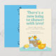 This is a customized baby shower invitation. Simply type in the text that you want for your invitation The colors are Bermuda and Yellow so it is gender neutral. The image features a yellow rubber ducky taking a bath. The background color is Corn Silk with Sky Blue ridge footer border. To change the font and color just click on the blue personalize rectangle.