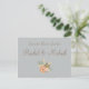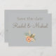 A lovely save the date postcard, this wedding item features a blue background with text written in lovely brown font. It has a starfish with flowers. Personalize yours today!