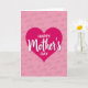 This card features a large, saturated fuchsia heart centered on a soft blush-pink background, setting a cozy, affectionate tone ❤️. The background carries a faint repeating pattern of light, cursive-style lettering that feels like a gentle murmur behind the main shape. Inside the heart, the word “Mother’s” is the largest line, arcing across the middle in smooth, flowing white lettering that suggests a tender, close bond. Above it, “HAPPY” sits smaller in white uppercase letters, and below, “DAY” appears in matching white uppercase, keeping the layout balanced and easy to read. A slight shadow under the white lettering helps the words stand out as if they’re softly lifted from the heart. The layered pink shades—from pale blush to rich magenta—add a romantic, caring warmth, like a quiet hug in color 🌼. The overall look is a centered fuchsia heart on a pastel pink field with a subtle repeating light-letter pattern behind it.