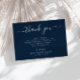 A simple navy blue themed card with white script, the text and colors can be personalized.