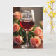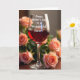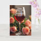 This card features a clear stemmed glass centered in the scene, filled with a deep ruby-red drink that catches the light with a soft shine. Across the front of the glass, a white flowing message reads, “Happy Mother’s Day to a Wonderful Sister!”, sitting neatly on the bowl where it’s easy to spot. Around it, lush flowers in peach, blush, and pale pink crowd in close, like a gentle hug, with some blooms sharply detailed and others fading into a soft blur for depth. Dark green leaves weave between the petals, adding contrast and making the lighter colors feel even more tender ❤️. The warm lighting creates small highlights on the glass and a velvety glow on the petals, giving the arrangement a cozy, affectionate mood. Everything rests on a dark, polished wooden surface that adds richness without stealing attention 🌼. In the background, the out-of-focus blossoms form a dreamy halo behind the glass while the foreground petals show curled edges and tight, spiral centers.