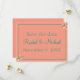 A beautiful save the date, this design features a peach background with blue font. There are lovely starfish in the designs. Personalize as you wish.
