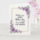 This card features a gentle cream background with a centered message that feels like a warm embrace ❤️. The main text reads, “Wishing a very HAPPY Mother’s Day To my wonderful STEP MOTHER,” arranged in stacked lines so the words “HAPPY” and “Mother’s Day” stand out most. The lettering appears in a dark, easy-to-read tone, while the message sits inside a thin, double-line rectangular frame in a muted plum color. In the top right corner, a cluster of watercolor-style flowers leans inward as if reaching toward the words, adding a friendly, affectionate touch. A matching floral cluster blooms from the bottom left, creating a quiet back-and-forth balance that suggests closeness and care 🌼. The blossoms shift through deep violet and soft lavender shades, with sunny yellow centers and sage-green leaves. Some petals and leaves extend slightly beyond the plum border, and the top-right bouquet includes a few small buds tucked beside the larger flowers.