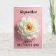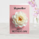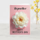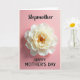 Designed with a creamy white flower as the main focus, this card shows layered petals curling inward in a soft spiral, like a full garden bloom opening slowly. Near the center, warm golden-orange stamens glow like a small sun, adding a tender warmth that feels like a quiet hug ❤️. The background is a gentle pastel pink, giving the scene a calm, affectionate mood without needing anything else. Soft, diffused lighting creates light shadows along the petal edges, making the bloom look rounded and touchable. A thin, cream-toned border frames the tall layout and keeps everything neatly contained. At the top, the word “Stepmother” appears in a flowing, cursive-style font in a dark tone, centered above the flower. Near the bottom, “HAPPY MOTHER’S DAY” is set in clear, heavier lettering in a matching dark color, balanced and easy to read 🌼. The petals show fine texture and slight waves, and the golden center sits sharply against the pale whites and pinks.