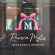 Lovely Striped Pink Bow Monogram name In Script Window Cling