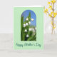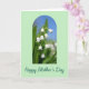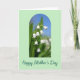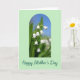 This greeting card features a soft pale green border framing an arched window that opens onto a cluster of bell-shaped white flowers hanging from slender green stems, like a gentle bouquet shared between close friends ❤️. The blossoms sit front and center, sharply detailed, with smooth white petals that look freshly lit by morning sun. Inside the arch, the background shifts from a clear blue sky near the top down into deep green leaves below, softly blurred to make the flowers feel closer and more intimate. The tender, springlike scene suggests a quiet moment of care, as if the flowers were chosen with someone special in mind 🌼. Below the arch, a short message is placed near the bottom in dark green, flowing lettering that stands out against the light background. The text sits centered and slightly spaced from the floral image, giving the design room to breathe without crowding the flowers. The arch has rounded corners and a thin outline, with the white blooms clustered slightly right of center against the blue-to-green backdrop.