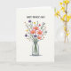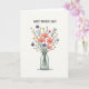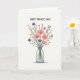 This greeting card features a stylized wildflower bouquet centered on the page, rising from a simple clear glass jar with green stems visible below the water line. Above the flowers, a short message sits near the top in clear black lettering, leaving plenty of open space around it. The blossoms mix tender pink petals with sunny yellow centers, deeper purple flowers, and small touches of orange, creating the kind of color pairing that feels like a gentle hug between close friends ❤️. Soft, even lighting and light shading in the flower centers add a calm depth, as if the bouquet is quietly leaning toward someone it cares about. The background stays a smooth off-white, keeping the focus on the bouquet and the message. Leaves and small seed-head shapes add airy texture, like a little shared moment on a bright morning 🌼. The jar is drawn with subtle highlights and a faint outline, and the water line is visible inside the glass.