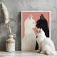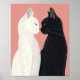 A minimalist art print featuring two cats, one with soft black fur and the other with fluffy white fur, nuzzling each other affectionately. Resembling a yin yang, this print is great for your home and great as a gift to your loved ones!