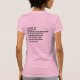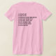 My overall review is that the T-shirt is nice, it fits true to size however the font is significantly smaller than advertised and you can't read it. The printing is unreadable and there is a strain to read it. It does not look like the advertised product. Maybe the shirt color is darker or a larger more visible font should have been used. Photos with and without flash and font is barely legible.