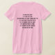 My overall review is that the T-shirt is nice, it fits true to size however the font is significantly smaller than advertised and you can't read it. The printing is unreadable and there is a strain to read it. It does not look like the advertised product. Maybe the shirt color is darker or a larger more visible font should have been used. Photos with and without flash and font is barely legible.