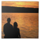 This fine art photography ceramic tile features two lovers in silhouette enjoying the sunset at Cayuga Lake in Ithaca, NY. This is one of the Finger Lakes of upstate New York. Beautiful orange, yellow and gold colors the waves and ripples in an abstract pattern.