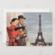 An illustration of a couple enjoying the sights of Paris. This invitation is perfect for a destination event in Paris.