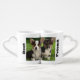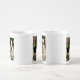 Put your names on the mug or leave it the way they are.On this cup set you have the black text saying best friends and a photo of two corky sitting together on the green grass. With a green forest back ground. You can change the bees for your own photo as well.