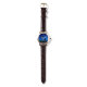 Has heft and feel of expensive stainless steel quartz watches. Good band with safety catch. I removed links, which is easy because engraved arrows show direction to push the linking pins. As always by this seller, the image (a railroad logo) is a perfect reproduction of my emailed image, and is precisely spaced and aligned.