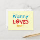 Nanny Loves Me T-shirts, cards, stickers, bodysuits bags, and more with colorful red, yellow, and blue text and heart design. These Nanny Loves me apparel and gift items will make nanny smile!