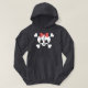 Girl's skull and crossbones pirate flag emblem with heart bones, eyes, nose and pink bow. T-shirts, hoodies, cards, gifts.
