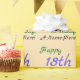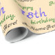 This loving birthday wrapping paper design features a message like "Happy 18th birthday, A-Name-Here!", where the name and birthday number can be personalized. The background is colored beige. Wrapping paper like this might be used to wrap gifts being given to somebody who is celebrating a birthday. [~Z0000243]