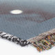 A quality printed throw has its advantages. This is a much finer weave throw than its loopier cousins, and though lighter, it is worth the investment for custom room accessorizing. The back is much prettier than the typical brown, and the fringe on the long sides very vivid, the selvage nicely done. Before photographing, I washed the throw in cold water, delicate, with a thicker woven throw the same size. On tumble dry low, this throw was dry in half the time as the other. This is a very practical quality if you use throws for furniture covers or to wrap up in frequently. The sleekness of the fabric makes it a great layer for accenting or protecting without the feeling of sitting on too much stuff. Perfect for napping or when you feel a light chill coming on. The color printing is beautiful and on this fabric, matched the design and color of my Photoshop image. This is an advantage for blending room fabrics and colors. The fringe on the short sides prints the colors from the design image and therefore varies from the side fringe. I streaked a white fractal line through the plaid pattern to give the illusion of weaving. This printed as crisp as an illusory thread, and put some white in the short side fringe, showing another advantage of print vs loomed- for artistic purposes, line lines, detail, and color integrity can be planned and preserved. My loomed throws have color limitations and more of a needlepoint texture. Print throws reproduce an exact image. The throw felt a little stiff straight out of the package, but this went away in the first delicate wash. Of course I searched the wash water for ink or bleeding and there was none.