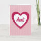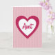 This greeting card features a large heart design set on a blush pink background with fine vertical stripes that resemble softly ribbed paper. Centered on the front is a deep fuchsia heart with the same striped texture, giving it a cozy, layered look that feels like a warm hug ❤️. Inside it sits a smooth white heart that creates a gentle contrast, like a quiet space meant for affection and closeness. The word “Aunt” is placed across the middle of the white heart in flowing cursive-style lettering, colored in a rich magenta tone. The soft pinks and stronger fuchsia shades work together like a tender family bond, with the nested hearts suggesting care held safely within care. There’s a simple, romantic warmth in the way the shapes stack neatly and draw your eyes inward, as if inviting a fond pause 🌼. The background remains blush pink with evenly spaced vertical lines behind the centered double-heart.