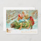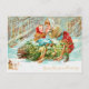 LOVING CHRISTMAS GREETINGS, small girl on sled of evergreen has hands warmed by larger girl, in a snow storm.