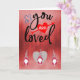 Pretty mixed red design with the words "You are Loved", and 3 illustrated Gnomes. Great card from the children to their Dad on Valentine's Day.