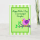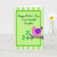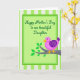 This design shows a central rectangular panel framed by several green borders, set against alternating light green and white vertical stripes for a fresh, airy look. Inside the panel, a flowing line of dark emerald text sits near the top, centered and easy to notice. Below the words, a round little bird rests on a simple branch, its posture and gentle gaze suggesting a sweet, affectionate bond ❤️. The bird is bright magenta with curved purple markings on one wing, plus a golden-yellow beak and matching feet that add a friendly pop of color. Its single eye is small and expressive, giving it an innocent, caring look as if it’s quietly keeping someone close. The branch is a muted grey-brown and stretches beneath the bird, with a few emerald-green leaves that bring in a soft springtime touch 🌼. The text remains the main focal point, while the bird and branch sit just below it, balancing the layout without crowding it. The layered green frame grows darker toward the edges, and the leaves cluster near the right side of the branch.